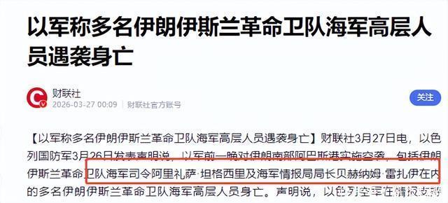 3月26日这一轮空袭,把中东战争的“最贵成本”直接摆上台面。 以色列公开称在阿巴斯港的打击中,击杀了革命卫队海军司令阿里礼萨·坦格西里、海军情报局局长贝赫纳姆·雷扎伊,以及多名海军高层。 更关键的细节是以方说法里连“他们正在开会”这种颗粒度都写得清清楚楚,这种精度不是炸弹先进就能解释的,真正决定“刀口有多准”的是情报链条有没有伸进对方的核心圈。 把一国海军指挥层在港口会议室里“一锅端”,最刺痛的不是伤亡数字,而是德黑兰必须承认一个现实,内部防线已被人按在地上摩擦。 很多人把这类行动看成单纯的军事胜负,其实更像金融市场里“信用击穿”。一次斩首的震荡,能让决策系统的风险溢价飙升,让每一次开会、每一次出行都变成高成本交易。 高官彼此不敢信任,命令下达变慢,执行层互相观望,战场上的反应速度就会下降。更反常识的是斩首越频繁,越可能说明以方在正面战场难以迅速拿到“可验证的战果”。 当军事行动迟迟不能逼出预期结果,最容易走向两条路,一条是继续用暗杀和渗透制造内部瓦解,另一条是试探更敏感的目标,逼迫对手在恐惧中让步,这也是外界真正不安的地方。 此前冲突中,以方并非只盯着人,它还把触角伸向能源与关键基础设施,比如曾把打击指向南帕尔斯天然气田一类目标。 能源设施意味着现金流、民生与国家韧性,是经济意义上的“战略资产”。这类打击不一定立刻改变战线,却能持续抬高国家运行成本。 接下来出现的“核安全红线”试探,更值得所有国家警惕。以方曾将目标逼近布什尔核电站及电站厂区,这座核电站由俄罗斯援助建设,也是当地唯一核电站。 爆炸点一度距离核反应堆仅200米,这不是单纯的军事话题,而是对全球核安全秩序的压力测试。 中国国防部新闻发言人在例行发布会上已明确表态,呼吁各方立即停止军事行动,防止战火蔓延外溢,避免局势进一步升级。 这个表态的含金量在于它把问题从“谁更强硬”拉回到“谁敢把人类共同安全当筹码”,核设施一旦被误判、误击、误引爆,后果不分阵营。 回到德黑兰内部,这场战争最阴冷的部分不在天空,而在办公室。德黑兰并非没有反制,冲突爆发后,它加码清理内部叛徒,在多省抓人。 公开报道显示,3月26日在四个省份抓捕了14名涉嫌为境外势力服务人员;3月25日还宣布逮捕了39名涉嫌为美国、以色列或恐怖组织从事间谍工作的雇佣人员。 数字看起来不少,但问题也恰恰在这里,抓得越多,越像在“补漏”,而不是拔掉暗桩。 因为能把“海军司令何时何地开会”这种信息送出去的人,级别绝不可能低到只是一线的外围执行者。德黑兰清理到的更像触手,真正的主干仍藏在组织肌理里。 这就解释了为什么斩首会变成一种“循环”,一次精准打击之后,内部必然高压排查;排查扩大后,组织运行效率下降、互信进一步坍塌;而互信坍塌又会放大渗透者的操作空间,形成更容易命中的下一次“窗口期”。 这是一种典型的安全系统自我消耗,以方还擅长用“信息战”把这种消耗放大。华尔街日报援引美国官员的话称,美以两国已暂时将卡利巴夫与阿拉格齐移出清除名单。 这类消息的杀伤力不在真假,而在它能迫使对手内部做选择题。调查还是不调查,都会伤筋动骨;相信还是不相信,都会撕裂信任。而一旦信任被撕开,政治系统就会进入“风险规避模式”。 官员不愿拍板,部门不愿担责,关键项目推进变慢,财政与资源更多投入到内部审查与安保加码。 中东一旦走向“更敏感目标”试探,国际油气供应的预期会立刻重定价,航运保险费、能源输入成本都会被抬高。 能源价格波动会通过化工、航运、航空、制造业链条传导,最终落到全球通胀与资产定价上。 更重要的是它会强化一个趋势,安全与科技正在更紧地绑在一起,精准打击背后是情报能力、通信能力、数据能力、软件后门、卫星链路与算法处理的综合体。 谁能在技术上做“降维”,谁就能在冲突中把战争打成对方的“管理灾难”。这对任何国家的产业安全、网络安全都是现实提醒。 德黑兰现在最棘手的不是“抓到多少人”,而是能不能在不自乱阵脚的情况下重建可信的决策链条。 对外,冲突烈度可能继续波动;对内,渗透阴影会持续拉扯权力结构。它越急于用清洗解决问题,越可能落入对手希望看到的低效率与内耗。 以色列的斩首行动看似在战术层面得分,战略层面却在逼近一条更危险的边界。 能源设施、核电站这种目标,一旦被当成筹码,冲突就不再是地区问题,而是对全球公共安全底线的挑战。 这场仗最后拼的不是谁喊得更硬,而是谁能守住底线、稳住体系。斩首能制造恐惧,但恐惧最容易带来误判,真正决定局势走向的是谁先把“不可控”打开了盖子。